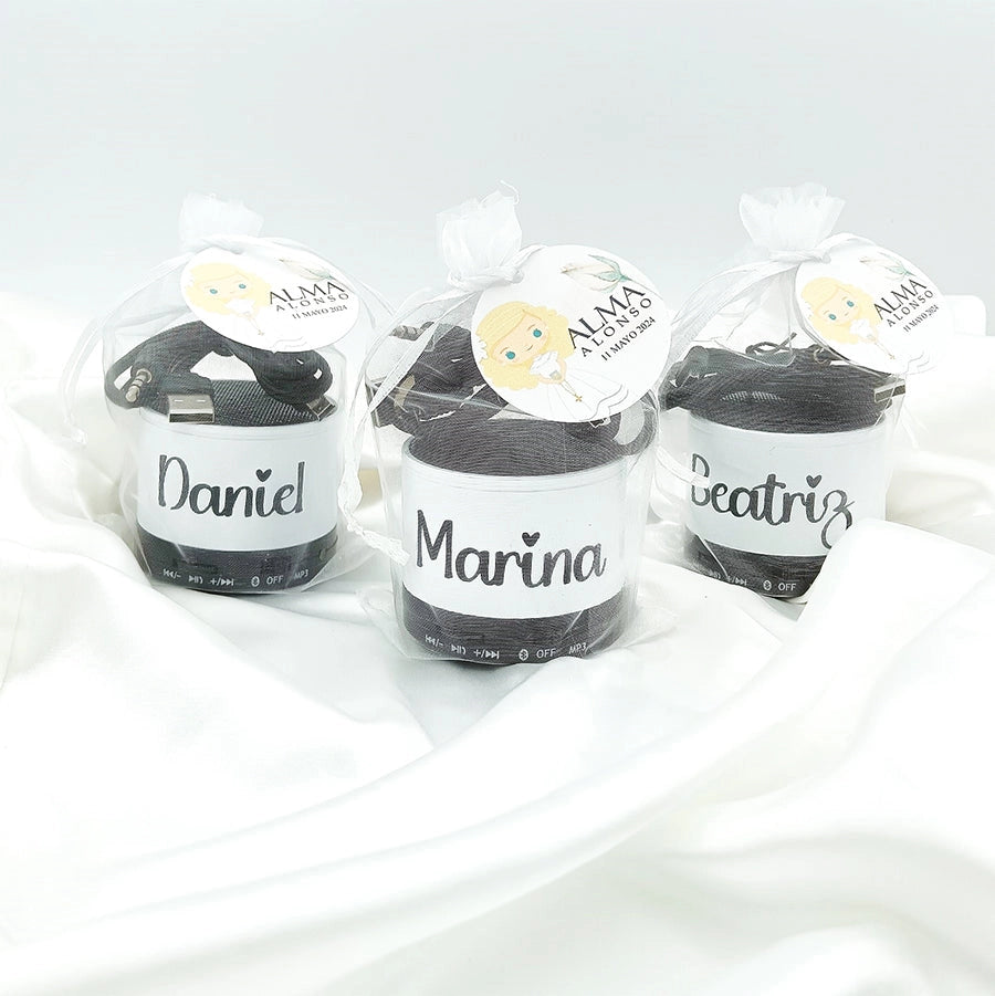 El nostre preu base inclou l'altaveu i la personalització en una cara. Podràs afegir els noms dels protagonistes i l'ocasió de celebració, cosa que fa que aquest detall sigui veritablement únic i significatiu.