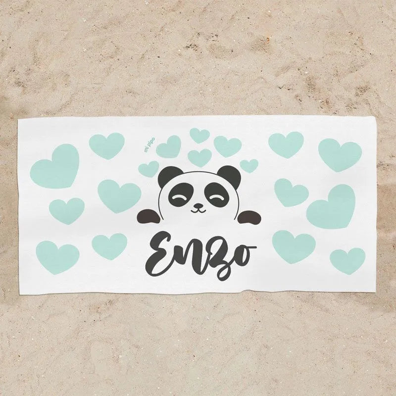 Toalla de Baño Premium Personalizada con Nombre- Panda (Colores)