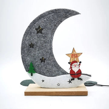Figura decorativa luna de fieltro y papanoel con luces led
