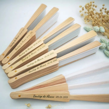 Haz que tu celebración brille con un detalle personalizado, elegante y sostenible. Personaliza tu abanico de madera grabado a láser y crea un recuerdo especial con De moi à toi, tienda española especializada en regalos originales personalizados con grabado premium.