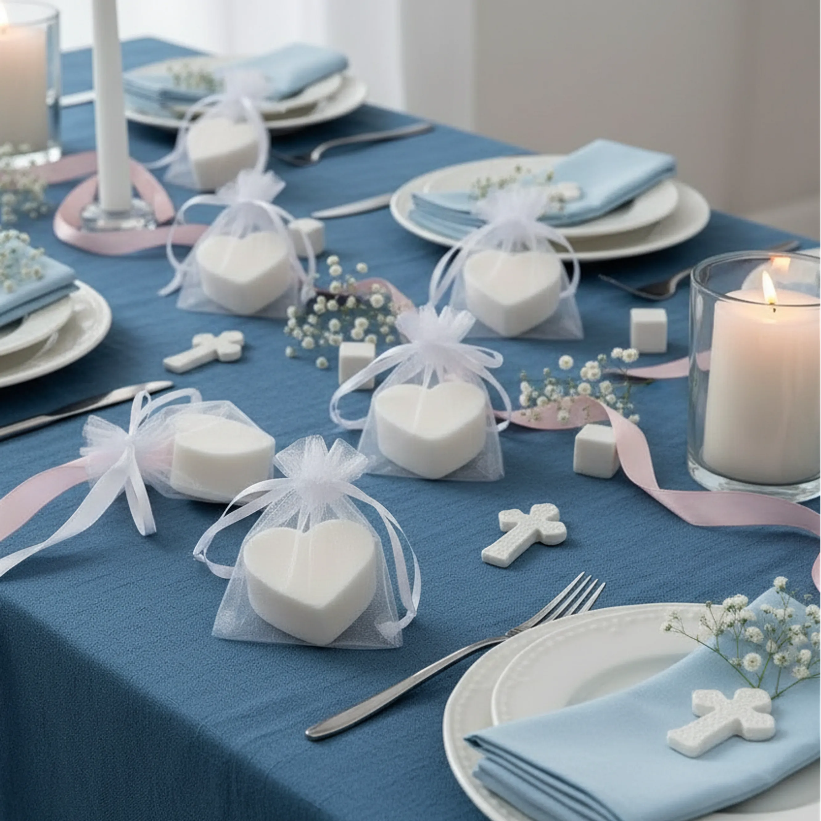 Jaboncitos de corazón blancos con aroma a coco – Detalle natural para comuniones y bautizos
