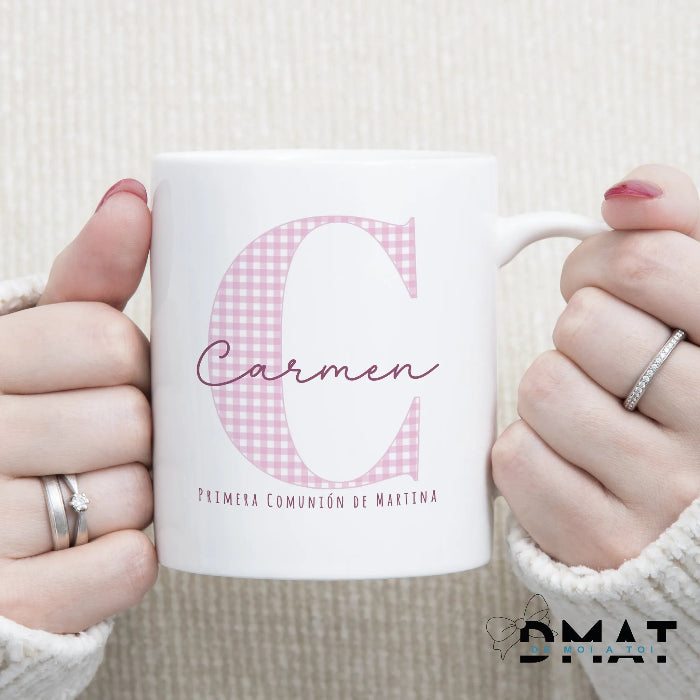 Nuestras tazas personalizadas con inicial Vichy son el detalle perfecto para quienes buscan algo bonito, útil y con un toque personal. Con un diseño suave y atemporal, puedes incluir la inicial, nombre y texto de celebración (como “Primera Comunión de Martina” o “Bautizo de Daniel”), creando un recuerdo que emociona y se conserva con cariño.