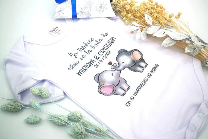 El regalo de boda ideal para embarazadas para felicitar el próximo nacimiento y recordar que los aún no nacidos asistieron a la boda. Diseño unisex!