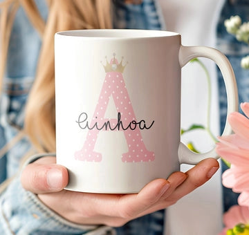 Personaliza con el nombre de la persona afoturnada que reciba el regalo de esta elegante, minimalista y bonita taza personalizada.