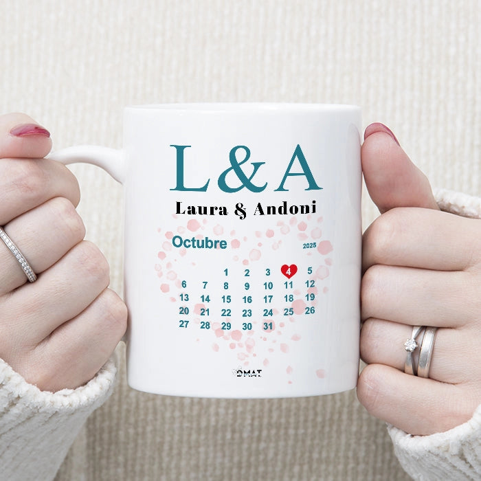 Bonita taza para regalar en bodas con descuento de cantidad.
