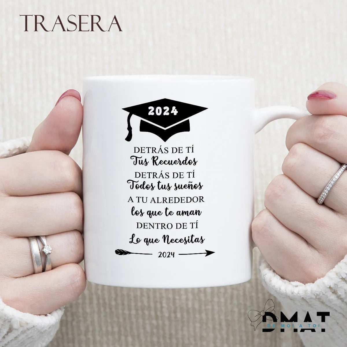 En su reverso, encontrarás una conmovedora frase que te inspirará a seguir adelante, incluso en los días más desafiantes. Además, puedes añadir un toque personal con el nombre del graduado o la fecha de la graduación, convirtiendo esta taza en un regalo verdaderamente único y significativo.