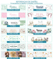 Incluye etiqueta personalizada en vinilo, buena calidad de impresión y resistencia. Puedes elegir un diseño de nuestra web o te lo hacemos a medida.