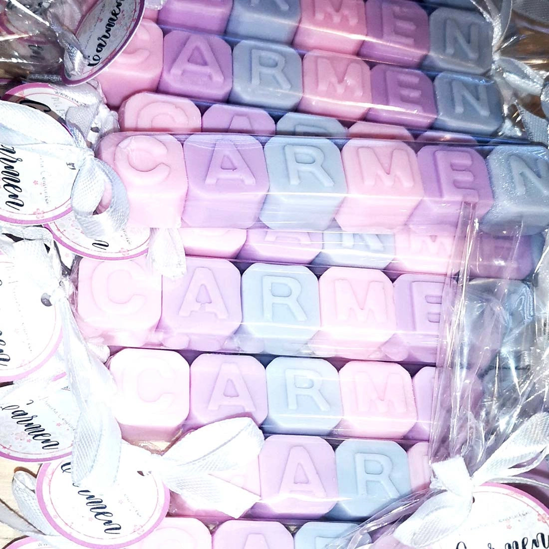 Los caramelos de nombre en jabón son ideales para sorprender a los invitados de cualquier celebración: