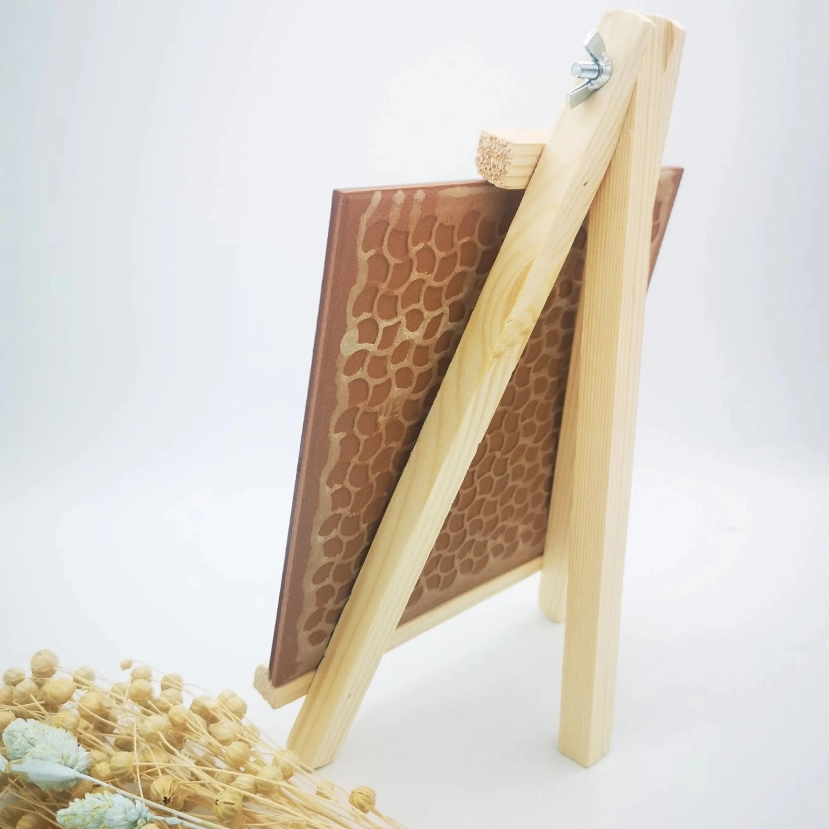 Fabricado con azulejo cerámico de alta calidad y montado sobre un caballete de madera natural, este producto une el encanto artesanal con la elegancia contemporánea. Su superficie brillante resalta los colores y detalles de cada imagen, creando un acabado profesional y duradero.