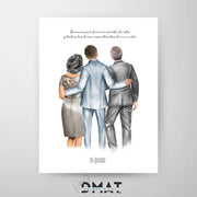 Lámina novio y padres – Ilustración personalizada de boda o recuerdo familiar