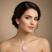 Este conjunto artesanal en tono rosa combina elegancia y sensibilidad en una joya única, hecha a mano y con alma.