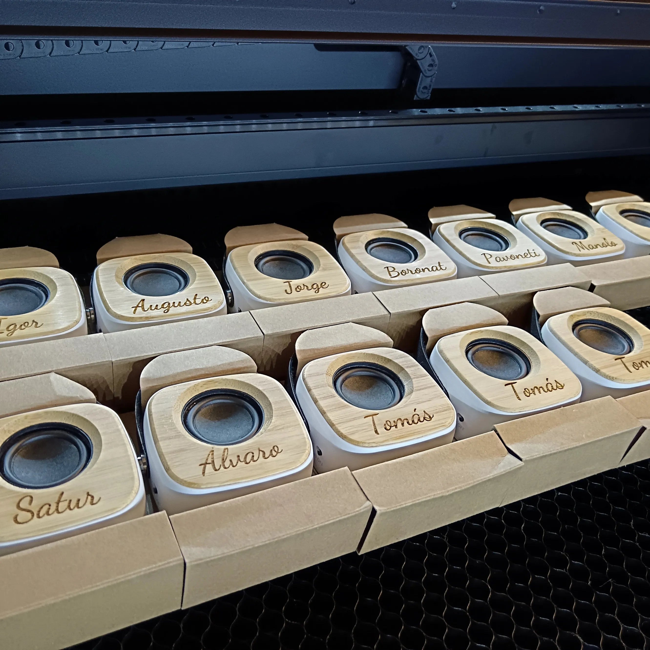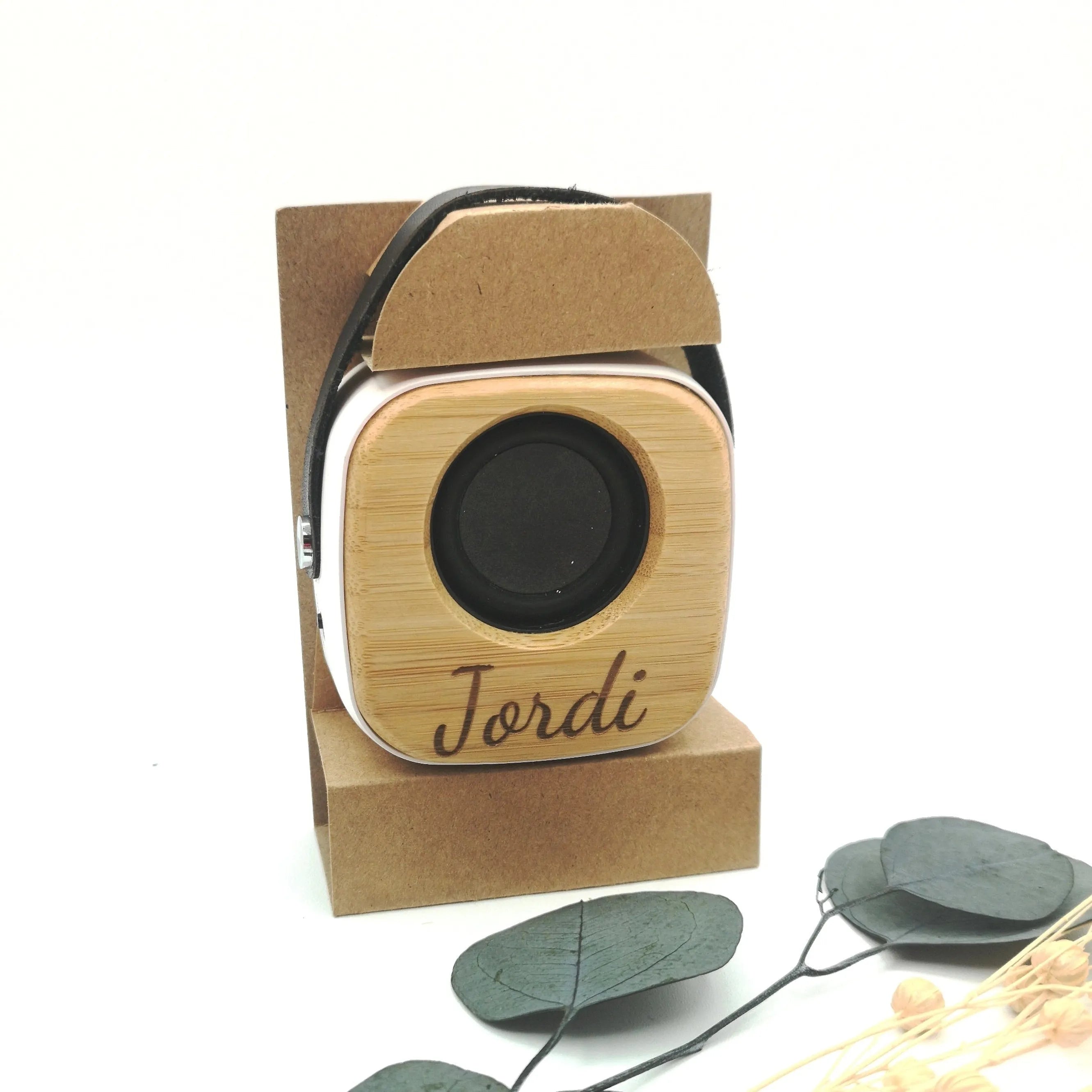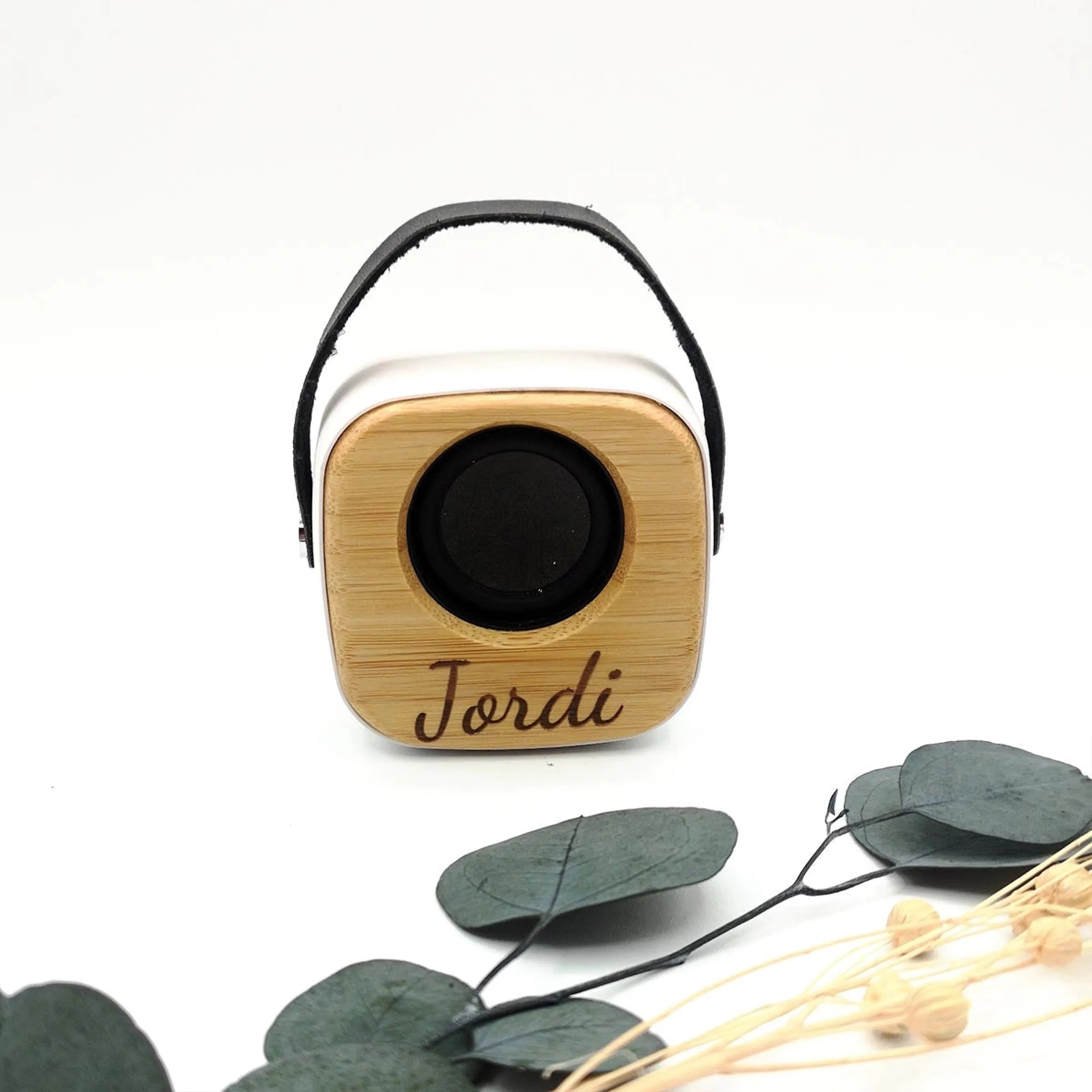 Altavoz de madera con Asa Grabado - Detalle para adolescentes
