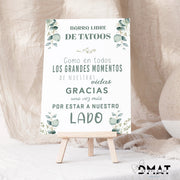 Incluye dedicatoria, nombre y el texto que desees. Y una vez terminada la celebración, enmárcalo de recuerdo!
