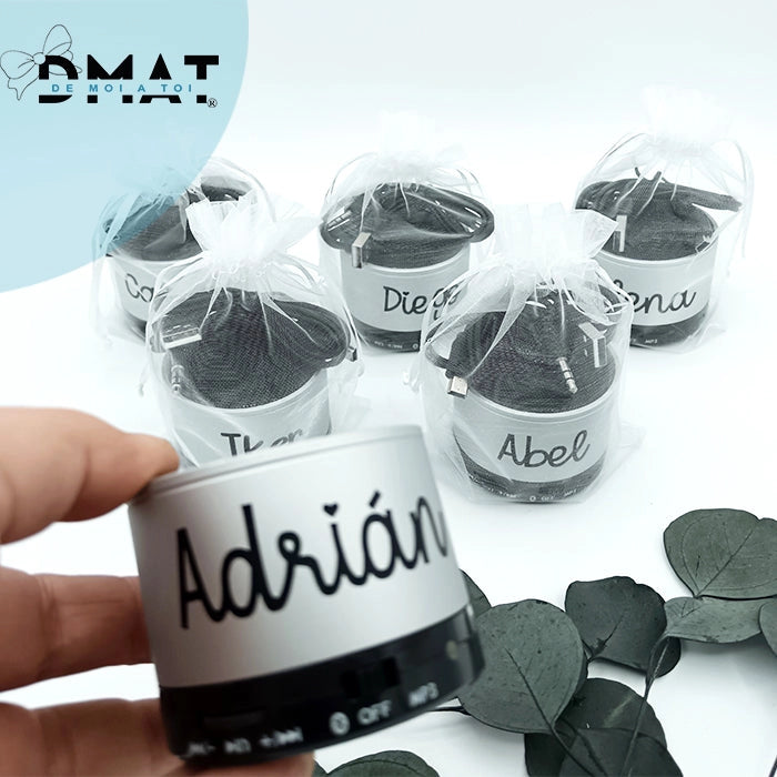 Personaliza tu altavoz Bluetooth con nombre en De moi à toi, tienda española especializada en regalos originales personalizados para eventos y celebraciones.