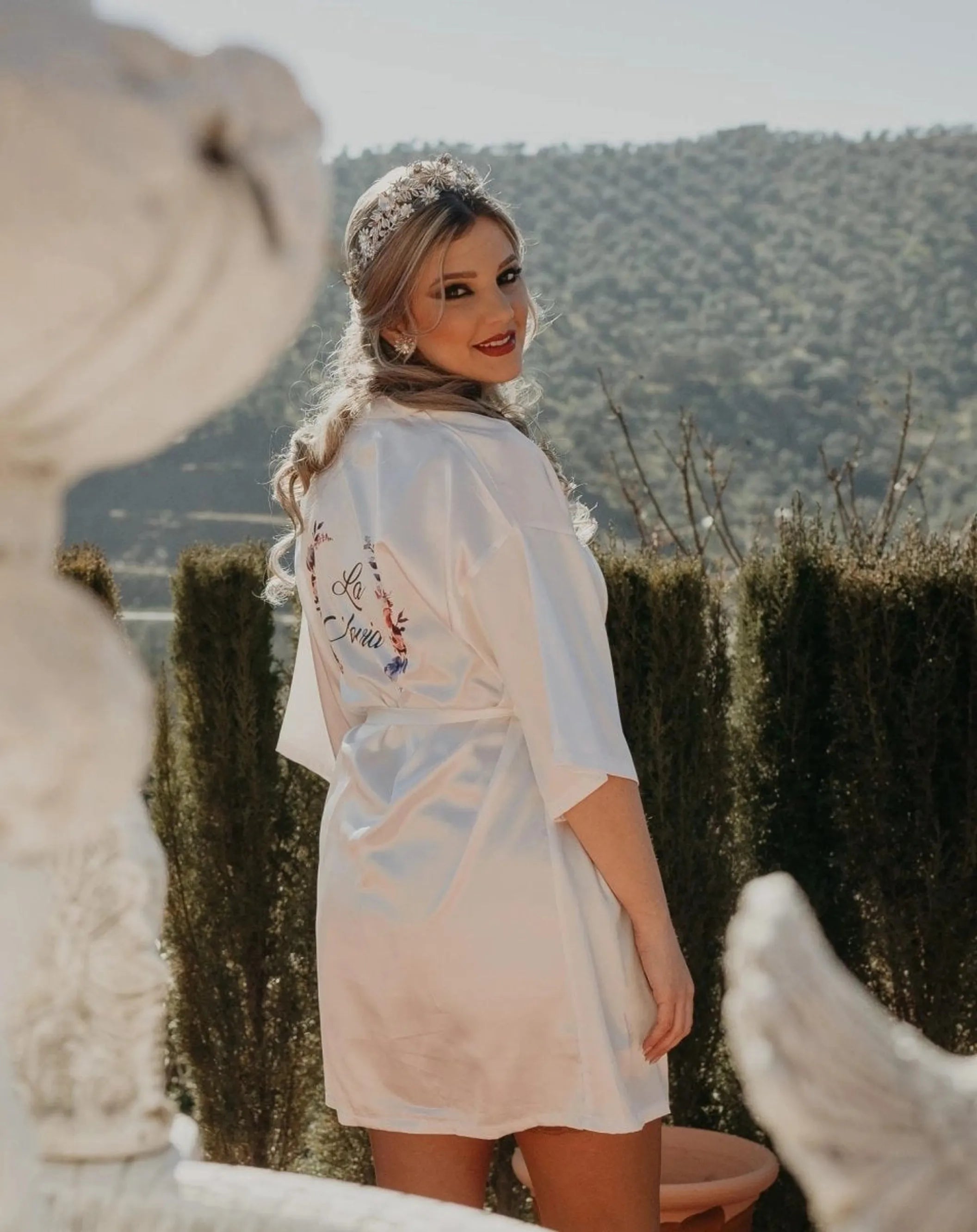 Más que una prenda, esta bata se convierte en un recuerdo imborrable de los momentos previos al “sí, quiero”. Ideal para regalar a la novia o a su equipo, capturar fotos preciosas el día de la boda o como detalle especial en la despedida. Cada bata se personaliza con mimo y se entrega lista para emocionar.