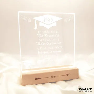 Símbolo de todo su esfuerzo, dedicación y amor que han culminado en este momento de celebración. Esta lámpara de sobremesa LED personalizada es más que un objeto decorativo, es un recordatorio brillante de sus logros y del apoyo inquebrantable de quienes lo rodean.
