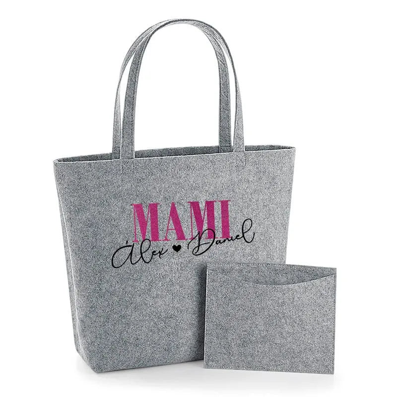 El regalo perfecto para mamá. Bolso de fieltro personalizado con bolsillo interior extraíble.