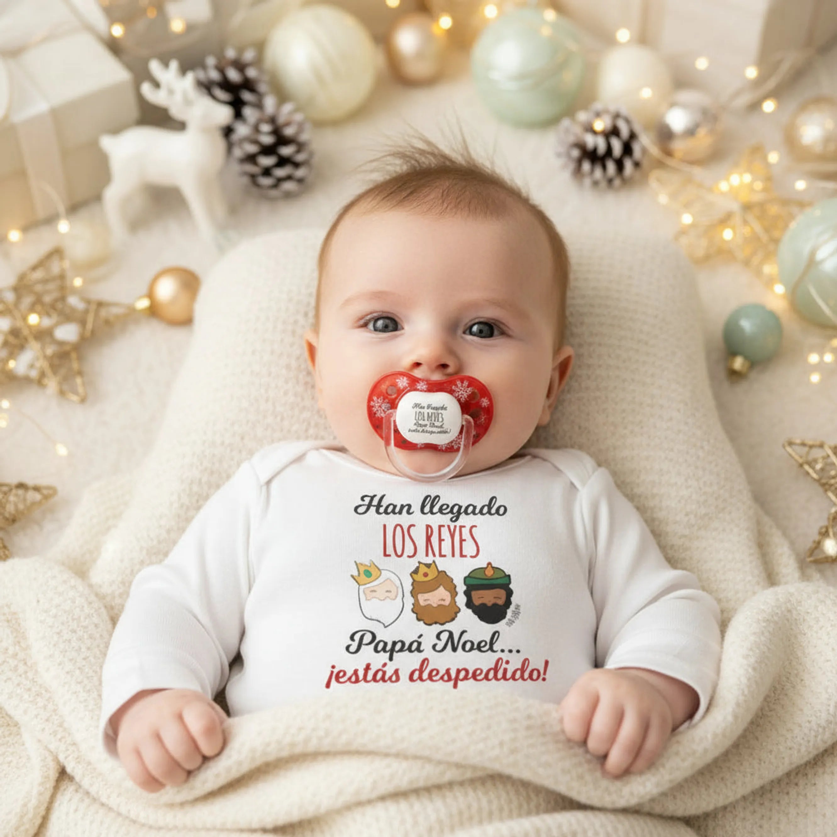 - Chupete Baby con diseño divertido navideño en color rojo con tetina a elegir