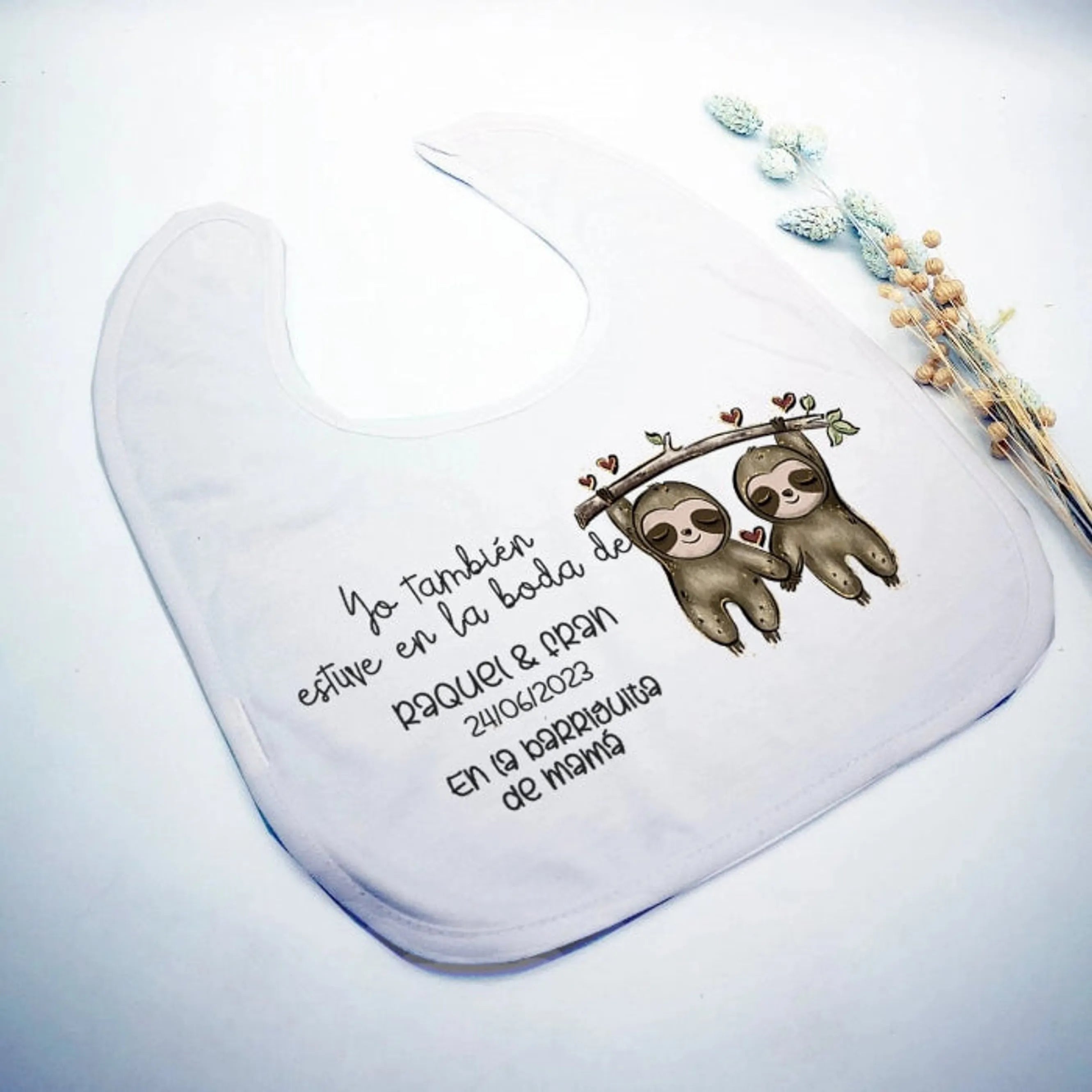 Este babero personalizado “Yo estuve en la boda de...” es el regalo ideal para futuras mamás invitadas a una boda. Un recuerdo tierno y divertido que conmemora el amor y la nueva vida que está por llegar. Su diseño unisex lo convierte en un detalle perfecto tanto para niño como para niña.