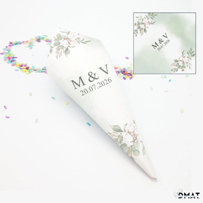 Conos de Confeti de Boda Personalizados – Diseño Natural “Pureza”