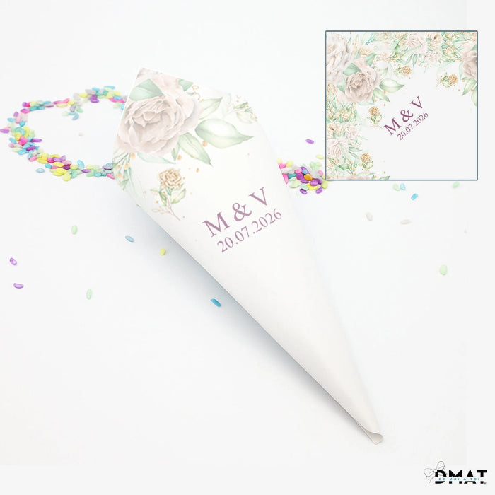 Conos de Confeti de Boda Personalizados – Diseño Romántico “Susurros Florales”