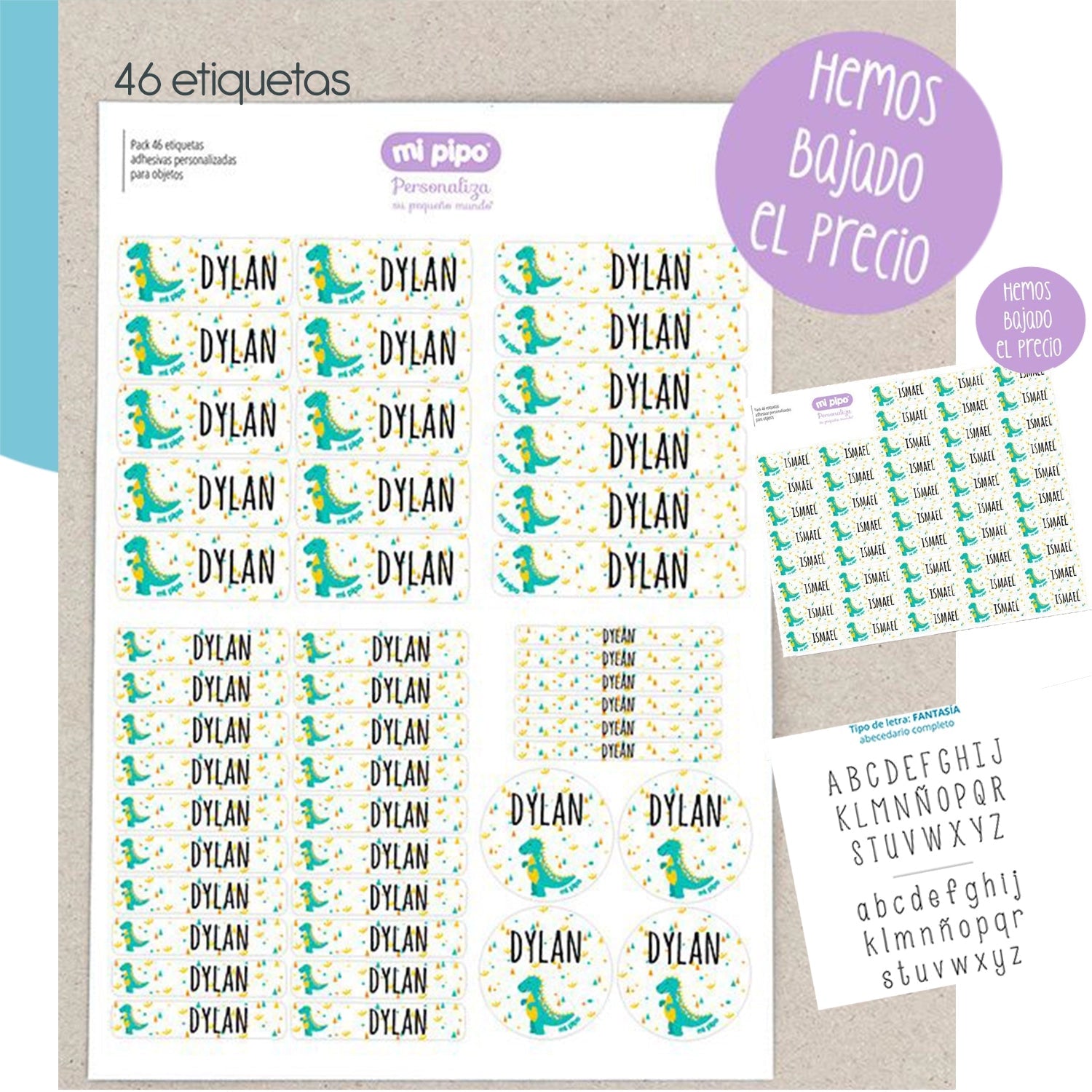 Pack 46 etiquetas personalizadas para objetos DIFERENTES MEDIDAS o Iguales