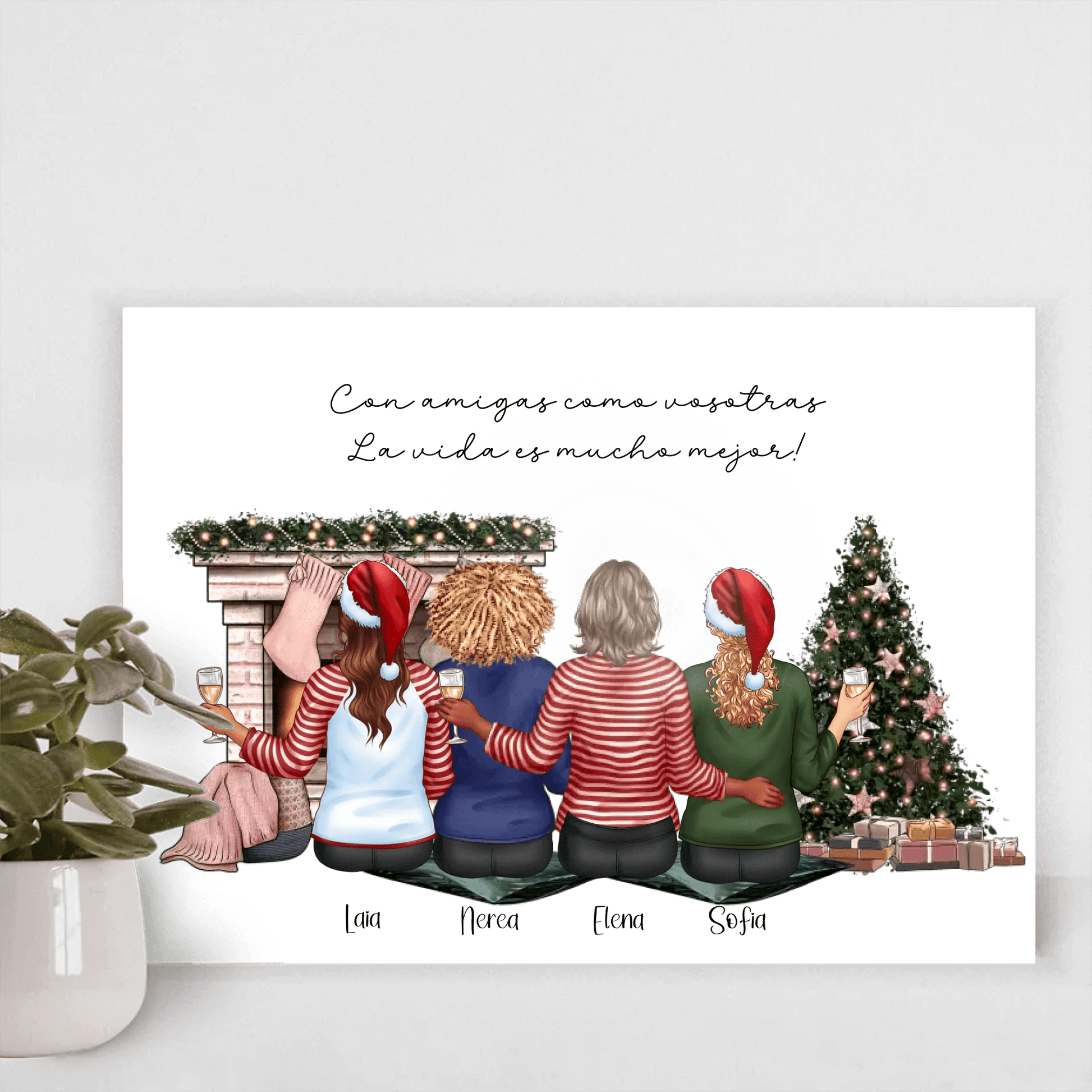 La lámina personalizada de amigas con escenario navideño es el regalo original perfecto para sorprender a tu mejor amiga, hermana o compañera especial.