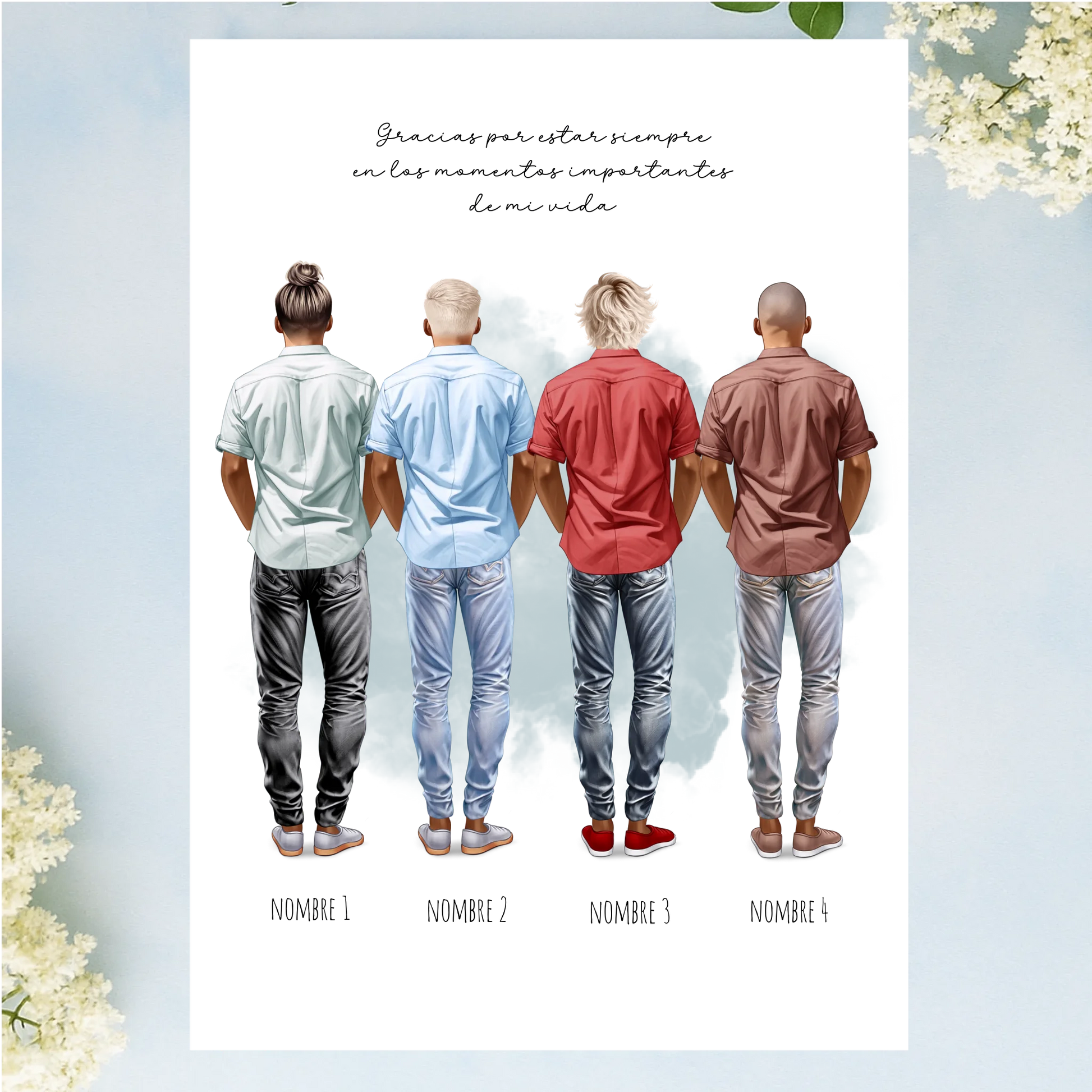 Esta ilustración es perfecta como regalo para cumpleaños, despedidas, viajes entre amigos, celebraciones especiales, amistad o simplemente para sorprender al grupo con un recuerdo personalizado. Su versatilidad la convierte en una opción ideal tanto para regalos individuales como grupales.