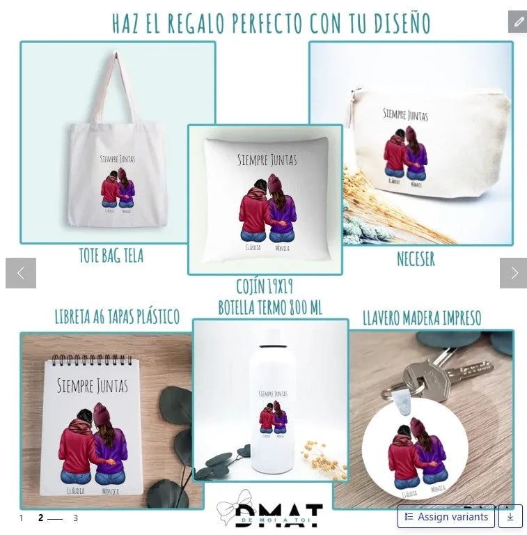 También dispones de un collage con los artículos personalizables en la última imagen de la galería. Se irá actualizando conforme modifiques tu ilustración. De esta manera, puedes ver la personalización aproximada de todos los artículos para que puedas elegir uno o varios para tener un set de regalo super original.